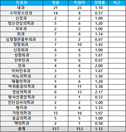 [2026년 상반기 레지던트 모집 지원현황] 서울대병원
