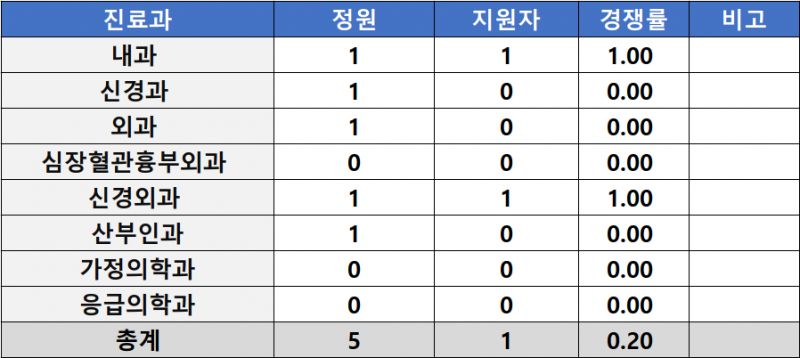 [2026년 상반기 레지던트 모집 지원현황] 의정부을지대학교병원