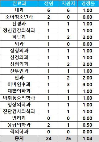 [2026년 상반기 레지던트 모집 지원현황] 순천향대부천병원
