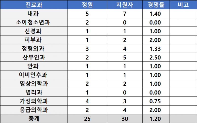 [2026년 상반기 레지던트 모집 지원현황] 강남세브란스병원