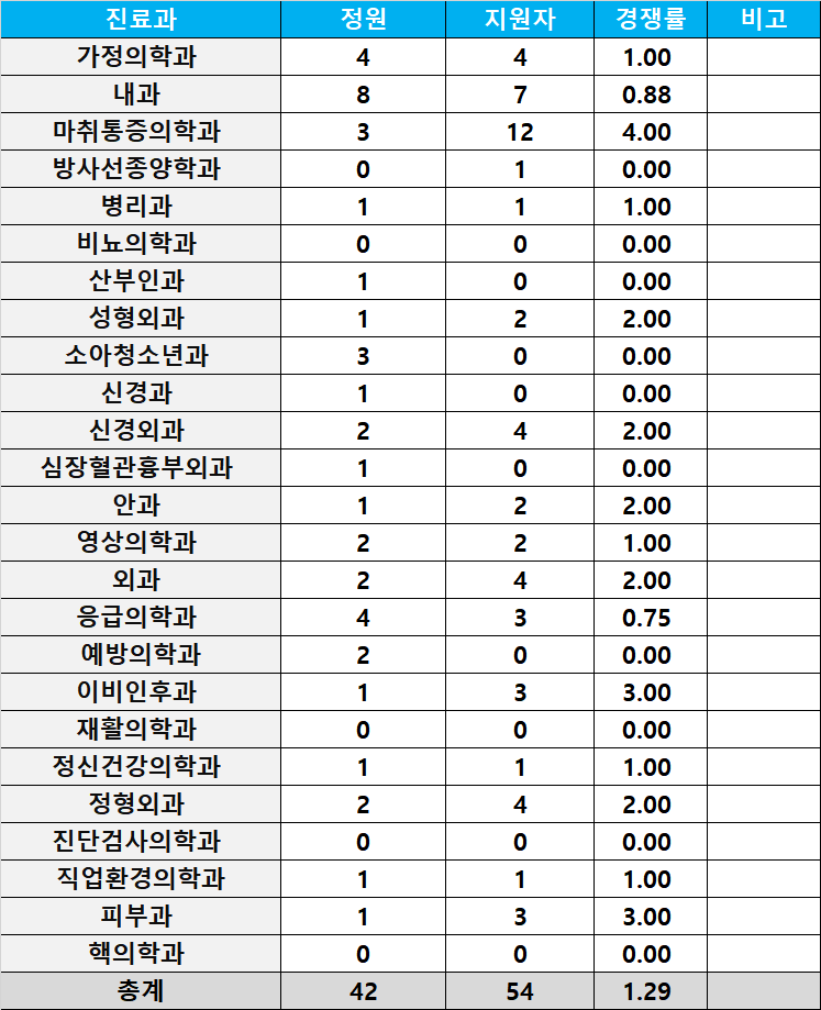 [2026년 상반기 레지던트 모집 지원현황] 아주대병원