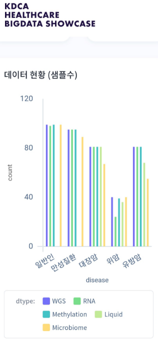 지난 2019년부터 현재까지 헬스케어 빅데이터 쇼케이스 사업을 통해 암생존자 200명(대장암 80명·유방암 80명·위암 40명), 일반인 100명, 생활습관 개선자(이상지질혈증) 100명 등 총 400명의 데이터가 수집됐다.