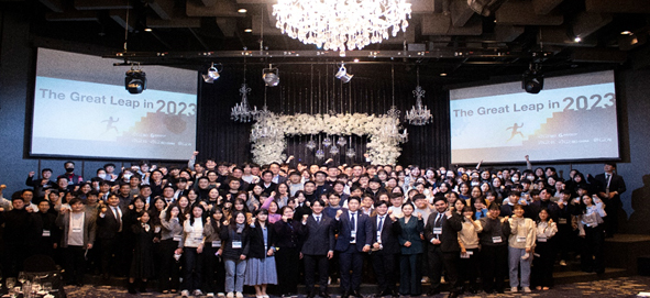 이환철 엘앤씨바이오 대표는 2023년을 엘앤씨 Family의 대도약(The Great Leap)으로 선포, 메가카티 식약처 승인과 중국 쿤산 공장 준공 등을 비롯한 엘앤씨Family 10대 뉴스를 소개했다.