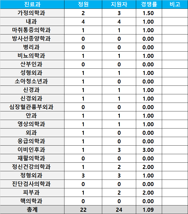 [2026년 상반기 레지던트 모집 지원현황] 한림대성심병원