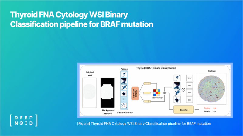 딥노이드(대표이사 최우식)는 의정부성모병원 및 성빈센트병원과 공동연구를 통해 “갑상선세포 디지털 이미지만으로 BRAF 돌연변이 여부를 예측해 내는 연구 성과를 이뤄냈다”고 10일 밝혔다.