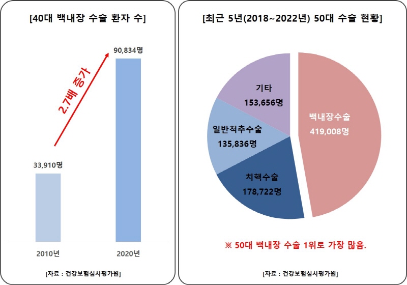 또 지난 2018~2022년에는 50대 약 42만명이 백내장 수술을 받았으며, ‘50대가 가장 많이 받은 수술’에 백내장이 이름을 올리기도 했다.