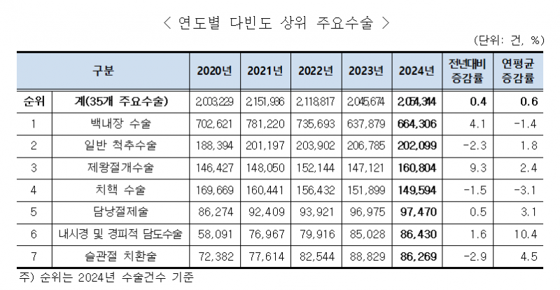 작년 35개 질환 수술 205만 4344건…전년대비 0.4% 증가