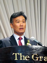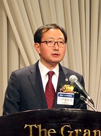 대한의사협회 추무진 회장[사진 右]은 축사를 통해 “원격의료 문제와 더불어 한의사 현대의료기기 사용과 관련 투쟁의 전면에 서있다. 기필코 한의사들이 현대의료기기를 사용하지 못하도록 투쟁할 것”이라고 강조했다.
