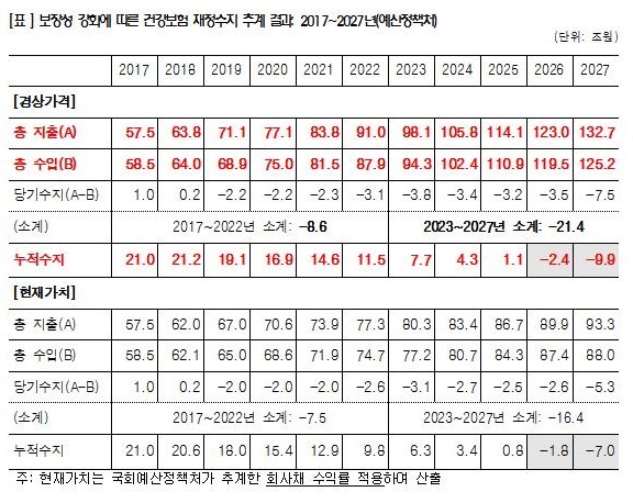 또한 정부가 과거 10년간의 통상 보험료 인상의 수준(10년간 보험료 인상 평균 3.2%)에서 관리를 한다면 추가적인 국고지원이 불가피하다는 주장이다.