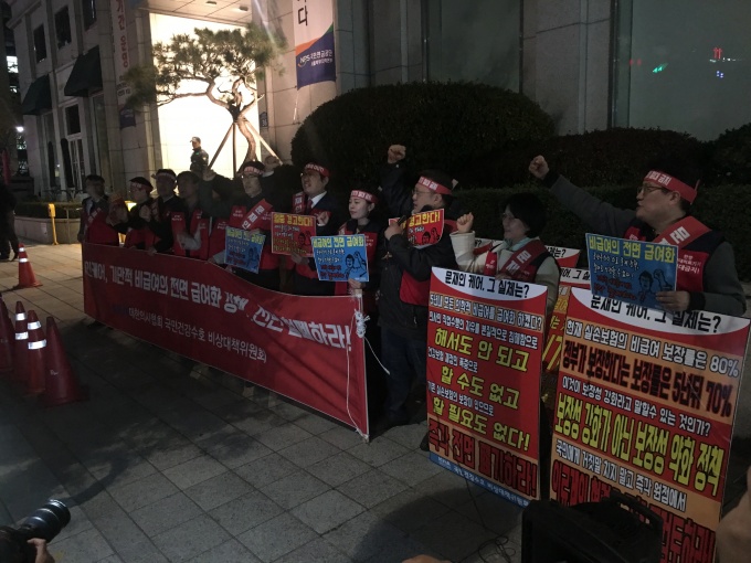 의협 비대위는 9일 보건복지부 서울사무소(국민연금공단 서울북부지역사무소) 앞에서 철야농성에 들어갔다.