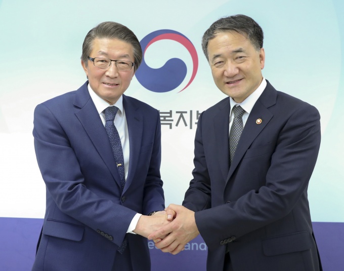 보건복지부(장관 박능후)는 19일 제39대 대한병원협회 회장으로 당선된 임영진 당선자(현 경희대학교 의무부총장 겸 의료원장)가 박능후 장관을 예방했다고 밝혔다. 이 자리에서 임영진 당선인과 박능후 장관은 병원계의 애로사항과 정책 제언 등 현안에 대해 폭넓은 의견을 교환했다.