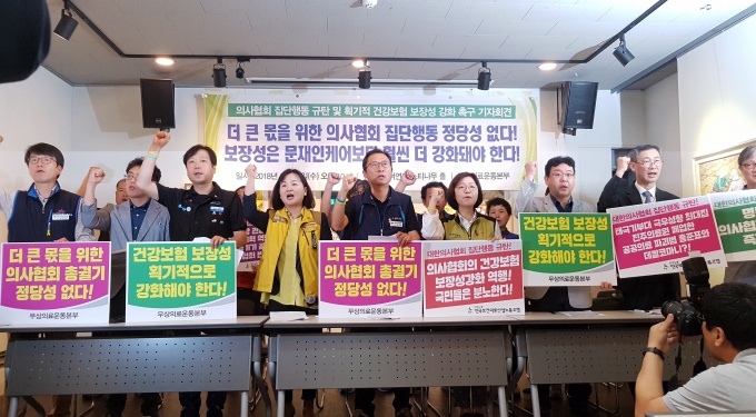 가장 먼저 노조와 시민단체는 의협을 향해 건강보험 보장성 정책의 본질을 왜곡하는 선동적 언동을 지금 즉시 중단하라고 촉구했다.