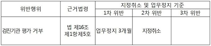 특히 의도적으로 평가를 거부하는 검진기관에 대한 처분 수위도 대폭 강화했다.