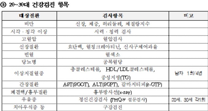 우선 20~30대 직장가입자의 피부양자 및 지역가입자의 세대원, 의료급여수급권자의 세대원 등이 국가검진대상에 포함돼 약 719만명 청년세대가 혜택을 받을 예정이다.