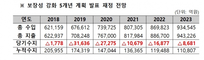 2018년 △1778억원, 2019년 △3조1636억원, 2020년 △2조7275억원, 2021년 △1조679억원, 2022년 △1조6877억원, 2023년 △8681억원으로 연속적인 적자 상황에 처하게 될 것이라는 분석이다.