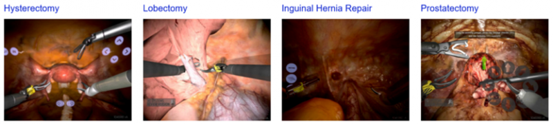 부인과, 흉부외과, 일반외과, 비뇨기과 모듈이 탑재돼 있으며 시뮬레이션 가능한 과와 질환이 지속적으로 추가될 예정이다. 시뮬레이션에서는 기구간 충돌, 수술 부위 손상 여부 등 주요한 오류에 대한 정보를 확인할 수 있으며 응급 상황에서 어떤 대처를 해야 하는지도 미리 연습할 수 있다.