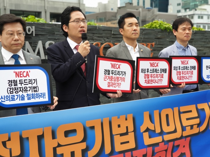 특히, 지난 2015년 NECA에서 “감정자유기법은 안전성에 문제가 없을 것으로 판단되나 선택 문헌 대부분에서 사용대상이 의학적 혹은 임상적 특징이 결여돼 있고, 연구자의 객관적 평가 없이 환자의 주관적인 설문 평가만으로 결과가 보고돼 증상과 삶의 질 개선에 대한 타당한 근거로 보기 어렵다”고 밝힌 부분에 대해서도 문제를 제기했다.
