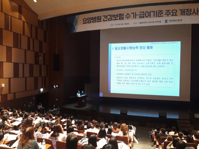 10일 건강보험심사평가원은 가톨릭대학교 성의교정 마리아홀에서 ‘요양병원 건강보험 수가 및 급여기준 개정사항 교육’을 실시했다.