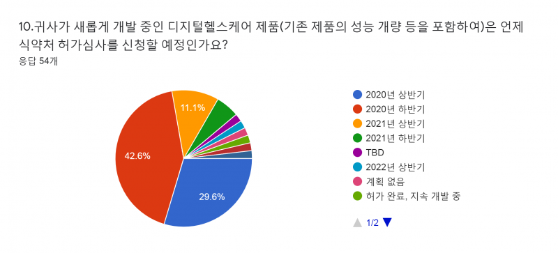 개발하고 있는 제품의 허가심사 신청 시기를 묻는 질문에는 10곳 중 9곳이 2년 이내 신청할 계획이라고 밝혔다.