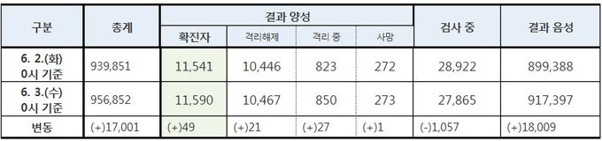 3일 기준 누적 1만1590명…사망 총 273명·완치 1만467명