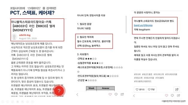스테로이드제뿐만 아니라 배란유도제, 유방암 치료제 등 전문의약품의 경우 약리작용 위험성이나 용업, 용량에 대한 전문지식이 필요해 의사 진단과 지시에 따라 처방해야 하지만 포털사이트에서는 복용을 권고하거나 조합법을 공유하는 페이지를 손쉽게 찾을 수 있는 상황이다.