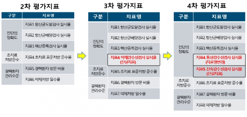 3차 평가지표에서는 약제감수성검사 실시율이 신설됐는데, 4차 평가에서는 이를 비롯해 신속감수성검사 실시율이 추가된 것이다.