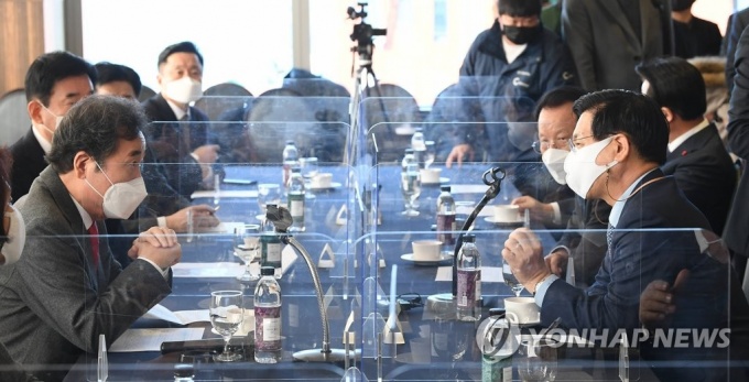 더불어민주당에서는 이낙연 대표를 비롯해 한정애 정책위의장과 김성주 방역본부장, 오영훈 당대표 비서실장 등이 자리했다.