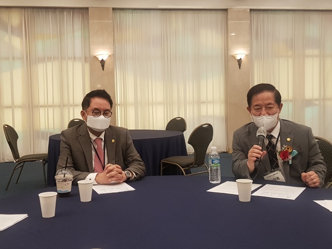 6일 서울 홍은동 스위스그랜드호텔에서 열린 건강검진학회 창립 학술대회 간담회에서 신창록 회장[友]과 박근태 회장[左]은 이 같이 밝혔다.