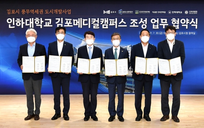 인하대병원에 따르면 학교법인 정석인하학원, 인하대학교, 김포시, 김포도시관리공사, 풍무역세권개발은 지난 7월30일 ‘인하대학교 김포메디컬캠퍼스 조성을 위한 포괄적 상호 협력의 업무협약(MOU)’을 체결했다.