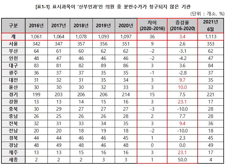 국회 보건복지위원회 소속 신현영 의원(더불어민주당)이 건강보험심사평가원으로부터 제출받은 자료에 따르면 '산부인과'이지만 분만을 전혀 하지 않은 무늬만 산부인과의원이 매년 1000개소를 넘는 것으로 확인됐다.