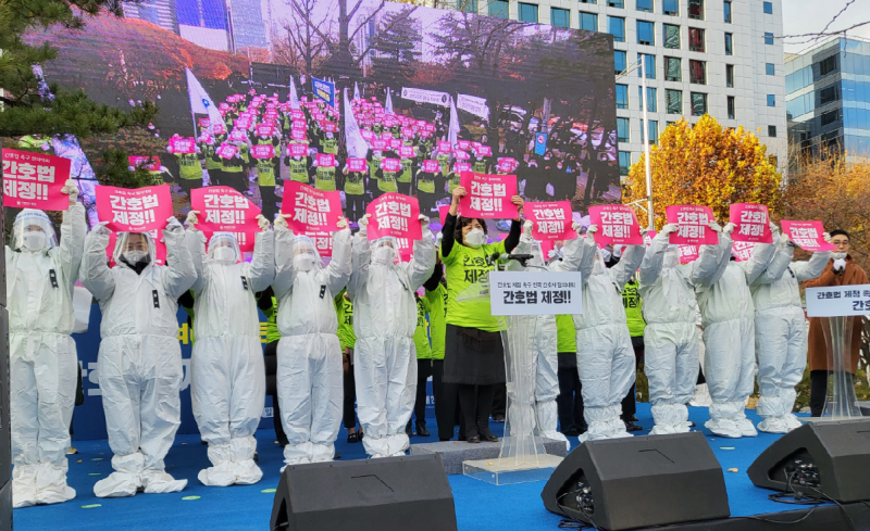 이날 결의대회에는 보건의료노조과 소비자단체, 간병시민연대 등도 참여해 간호법 제정에 힘을 실어줬다.
