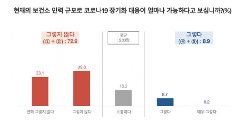 특히 현재 인력으로는 코로나19 장기화 대응이 어렵다고 생각하는 것으로 나타났다.