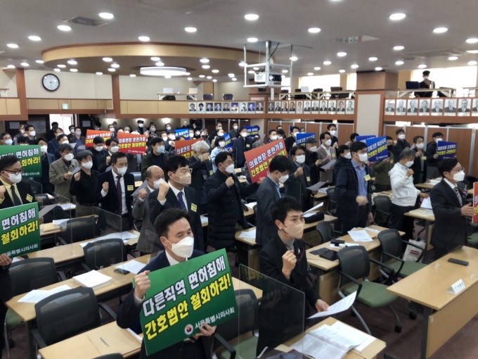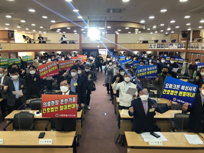 간호법 제정에 대한 의료계 반대 여론이 거세지고 있는 가운데 서울시의사회 대의원회들이 간호단독법 저지 입장을 다시 한 번 천명했다.