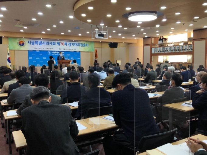 서울시의사회는 지난 26일 회관 5층 강당에서 제76차 정기대의원총회를 열고 '간호단독법 저지 촉구'를 대한의사협회 정기총회 상정안건으로 채택했다.