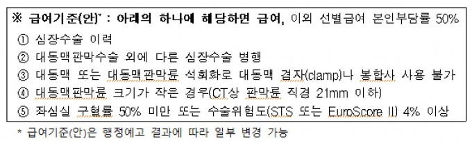 비봉합 대동맥판막치환술은 본인부담율 50%가 유지된다.