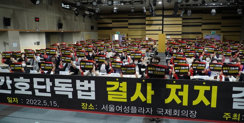 대한간호조무사협회(회장 곽지연)가 지난 15일 서울여성플라자 국제회의장에서 ‘간호법 제정 결사 저지’를 위한 결의대회를 개최했다.