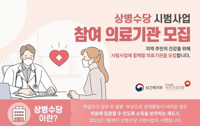 이를 위해 보건복지부는 지난 5월 상병수당 1단계 시범사업에 참여할 의료기관 모집을 시작했다. 예비수요 신청을 받은 후 6월 22일까지 참여 의료기관을 정식 등록키로 했다.