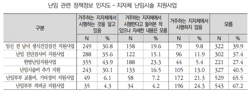 실제로 연구팀이 국내 난임 부부 808명을 대상으로 설문조사를 시행한 결과, 난임시술 관련 정책정보 및 건강정보 등에 대한 인지도가 낮은 것으로 조사됐다.