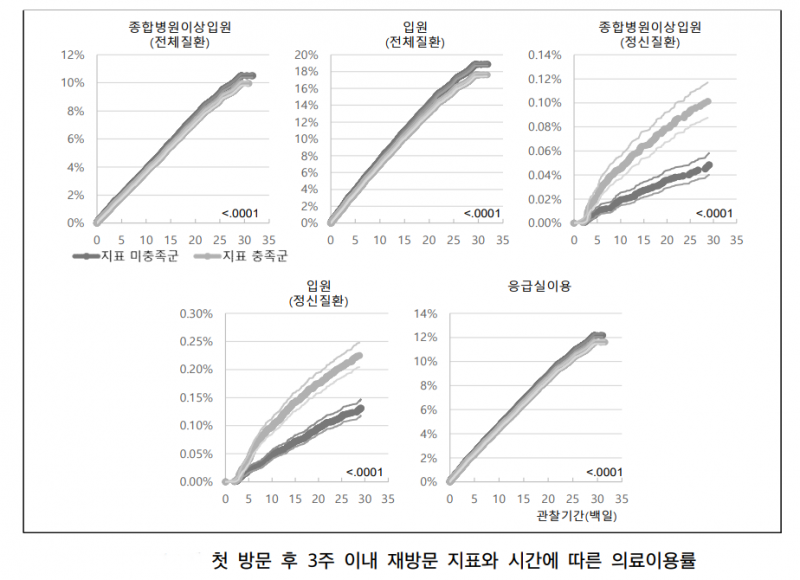 일례로 첫 방문 후 8주 이내 3번 이상 의료기관을 방문한 환자군은 그렇지 않은 환자보다 입원 위험도가 높았으며 이는 다른 지표에서도 마찬가지였다.