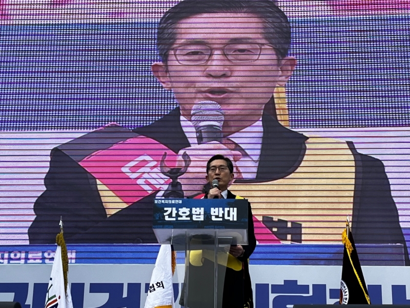 그는 "국민건강을 위험에 빠트릴 간호사만을 위한 간호단독법은 반드시 철회돼야 한다"며 "우리의 정당하고 합리적인 400만 보건복지의료연대는 국민 건강에 역행하고 보건의료질서를 무너뜨리는 잘못된 간호법을 폐기하기 위해 더 강경한 행동에 나설 수밖에 없다"고 경고했다.