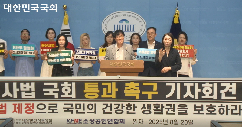 송치영 소상공인연합회 회장도 "문신 산업은 더 이상 음성적 영역이 아니"라며 "수많은 청년 창업가와 예술가들이 새로운 일자리와 국가 경쟁력을 만들어내는 분명한 소상공인의 영역"이라고 강조했다.