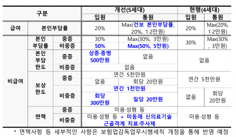 또한 비중증 비급여 보상 한도는 연간 1000만원으로 축소되고, 입원수당도 회당 300만원으로 규제한다.