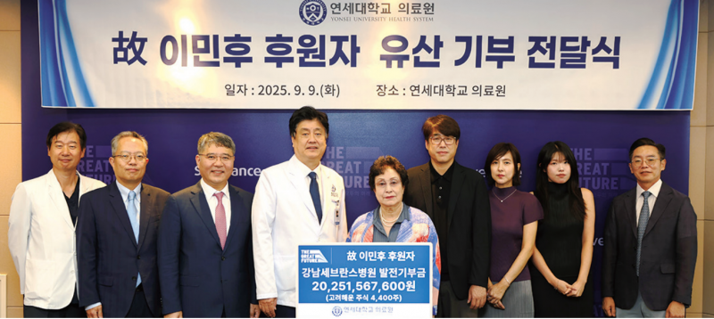 고(故) 이민후 후원자 유가족, 연세의료원 유산 기부 역사상 최대 규모