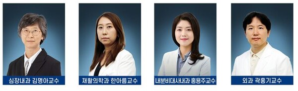 새로 영입한 의료진은 ▲심장내과 김명아 교수(고혈압, 심부전, 여성심장질환) ▲재활의학과 한아름 교수(재활의학) ▲내분비대사내과 홍용주 교수(당뇨병) ▲외과 곽홍기 교수(갑상선 질환, 유방 질환, 임파선질환) 등 4명이다.