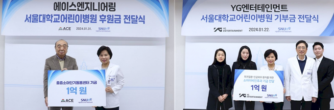 금년 1월 22일 YG엔터테인먼트가 1억원을 기부한데 이어 지난달 31일엔 에이스엔지니어링이 연달아 1억원을 전달했다.