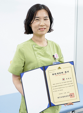 류정교 간호사는 “간호사로서 의식 잃은 환자를 발견하면 당연히 해야 할 일을 했을 뿐인데 하트세이버 증서까지 받아 감사하다”고 소감을 밝혔다.