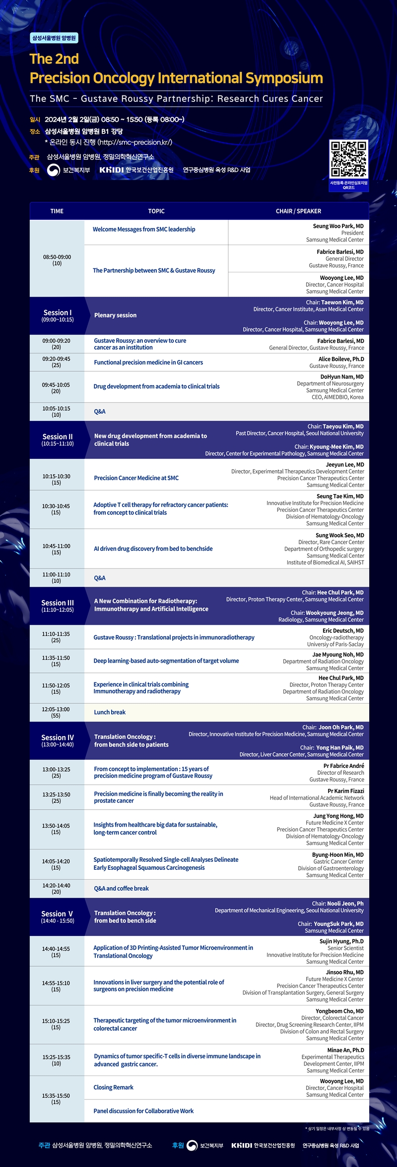 삼성서울병원 암병원과 정밀의학혁신연구소와 공동주최로 암 치료 및 연구 현재와 미래를 논의하며, 한국보건산업진흥원 연구중심병원 사업단이 후원을 맡았다.