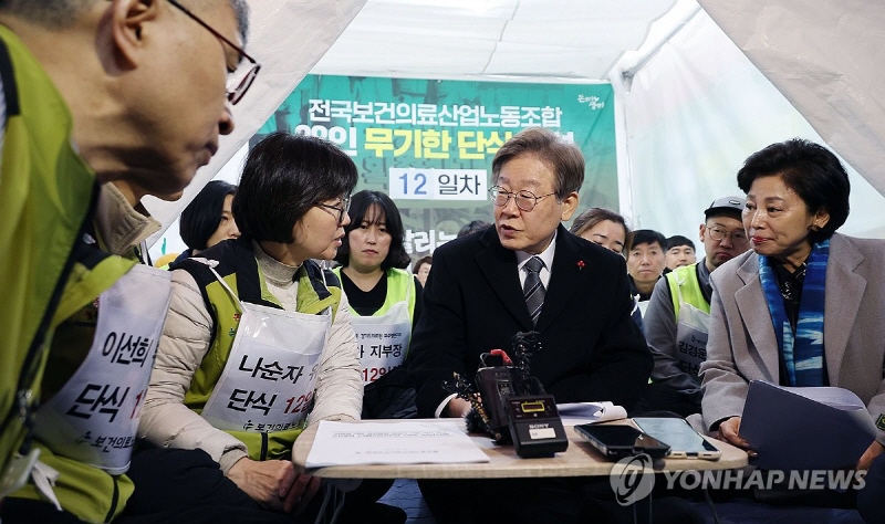 이재명 더불어민주당 대표가 오는 12월 20일 임시국회 본회의를 앞두고 전국보건의료산업노조 집단단식 농성장을 찾아 “공공병원 지원 예산이 최대한 빨리 통과되도록 노력하겠다”며 힘을 보탰다.