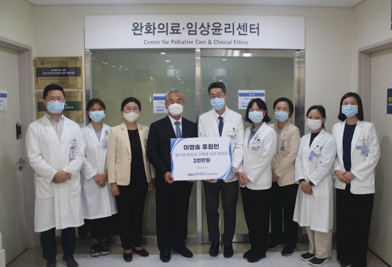 서울대병원 완화의료‧임상윤리센터(센터장 김범석)는 최근 이영술 후원인으로부터 말기암 환자 및 가족을 위한 후원금 2000만원을 전달 받았다고 밝혔다.
