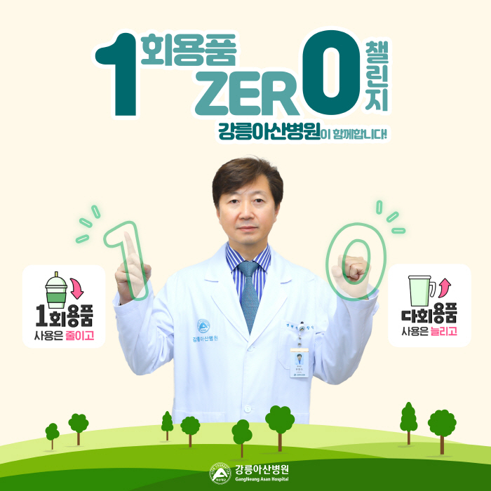 유창식 강릉아산병원장이 11일 일상 속 일회용품을 줄이기 위해 실시되고 있는 ‘1회용품 제로 챌린지’ 캠페인에 동참했다.